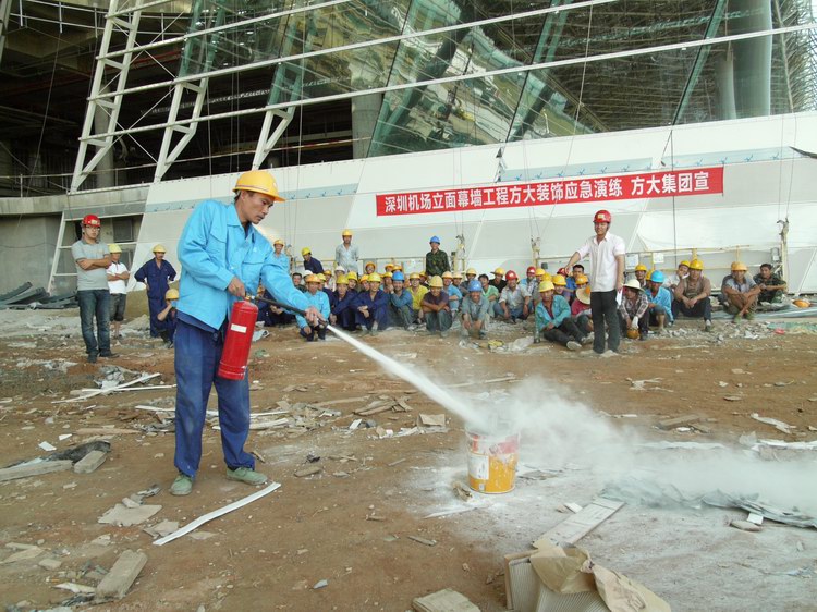 7月3日下午,为了检验今年全国“安全生产月”的成果和深圳机场T3航站楼幕墙工程项目的安全生产应急能力,智博体育在线app官网、深圳市方大装饰工程有限公司组织开展了为期半天的幕墙施工防火、防高坠、防坍塌安全事故应急演练。集团公司安全主管尚清波、装饰公司安全部经理丁志刚、T3航站楼项目部副经理高晶参与现场演练组织指挥。这次安全应急演练,检验了现场管理和施工人员面对紧急情况的应急处置能力和水平,提高了大家的安全应急意识和水准,整个演练过程衔接到位,收到了良好的预期效果。