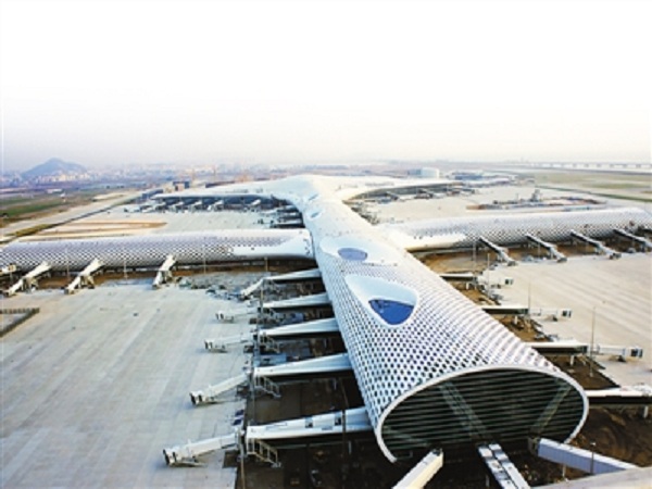深圳机场T3航站楼是深圳宝安国际机场扩建工程的主体部分,由深圳机场T3航站楼和GTC两个部分组成。其中T3航站楼占地19.5万平方米,南北长约1128米,东西宽约640米,总建筑面积45.1万平方米,智博体育在线app官网承建的立面幕墙面积为16.7万平方米,主立面采用呈60.2度倾斜的方大Low-E节能环保玻璃幕墙,既为旅客带来更为开阔的视野,也为整个大厅带来充足的自然光。