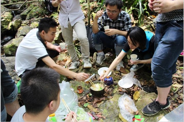 4月19日,智博体育在线app官网举办了四月员工生日月活动,此次员工生日月活动选址在惠州与深圳交界处名为情人谷的地方,四月生日月员工共有13人参加了此次活动。生日月员工一行穿行过金龟村之后,到达活动目的地情人谷。大家在领队的带领下自制火锅,享用过野外火锅后,继续沿着溪水溯溪而行,全程共徒步行走了17.4公里。