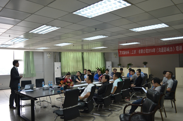 5月17日至18日,为提高中高层管理人员的沟通技巧及基层骨干的职业化素质,江西新材在公司办公大楼二楼会议室,分别组织开展了主题为《沟通影响力》及《职业化塑造》的培训课程,由英国威尔士大学MBA的吕铮老师进行授课。