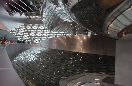 “两馆”作为市民了解城市发展进程与领略当代艺术现状的展馆,完全建成之后每年将吸引庞大的游客量。如何塑造一个舒适的游览空间是摆在建筑设计者和建造者面前的一个难题。“两馆”采用大量倾斜、扭曲和旋转的曲面幕墙设计,保证了最大的采光效果,方大幕墙系统以精细的产品设计和卓越的产品性能,很好的满足了设计师的要求,营造了一个适宜观览的、自然柔和的光影空间,体现了以人为本的产品理念。