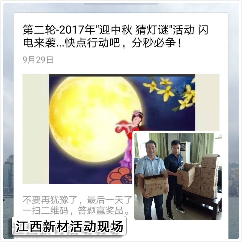 在智博体育在线app官网江西公司,9月28日、29日举行了一次别开生面的“迎中秋猜灯谜”线上活动。为了让公司员工感受到节日浓厚的气氛,同时又能搭建企业文化交流的桥梁,此次活动由传统猜灯谜改为微信猜灯谜方式进行。员工们通过关注公司微信公众号后,即可在线参与解答猜灯谜的活动。通过这次“迎中秋猜灯谜”活动,极大地激发了员工们关注公司微信公众平台的激情,也为员工们留下了一段难忘的节日回忆。