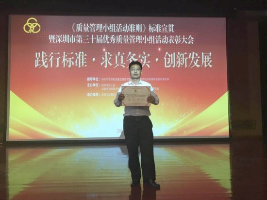 黄良江获颁“深圳市质量信得过班组先进个人”荣誉奖