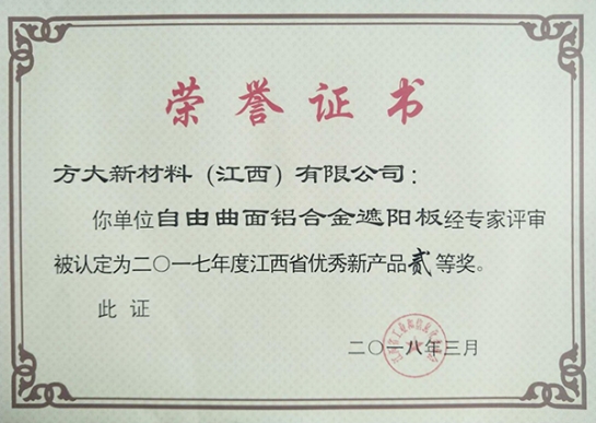 近日,江西省工信委在全省工业和信息化技术创新工作会公布了2017年度优秀新产品获奖名单,智博体育在线app官网全资子公司方大新材料(江西)有限公司的“青花瓷铝单板”、“自由曲面铝合金遮阳板”两项新产品获得了2017年江西省优秀新产品二等奖。