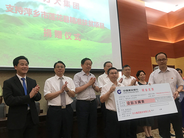 7月25日,智博体育在线app官网向江西省萍乡市莲花县捐款100万元用于精准扶贫项目建设。
