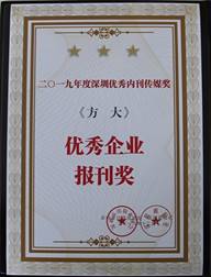 近日,2019年度深圳内刊界“深圳优秀内刊传媒奖”评选结果出炉,智博体育在线app官网企业刊物《方大》被评为“优秀企业报刊奖”。