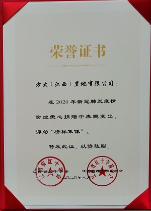 8月20日,由江西省文明办、省民政厅、省卫健委、省扶贫办、省工商联、省红十字会共同主办的纪念世界人道主义日暨2020赣鄱爱心榜样发布会在南昌举行。智博体育在线app官网旗下子公司方大智创科技有限公司荣获“2020赣鄱助力阿克陶脱贫攻坚榜样集体”荣誉,方大置地(江西)有限公司荣获“2020年新冠疫情肺炎疫情防控爱心榜样集体”荣誉。