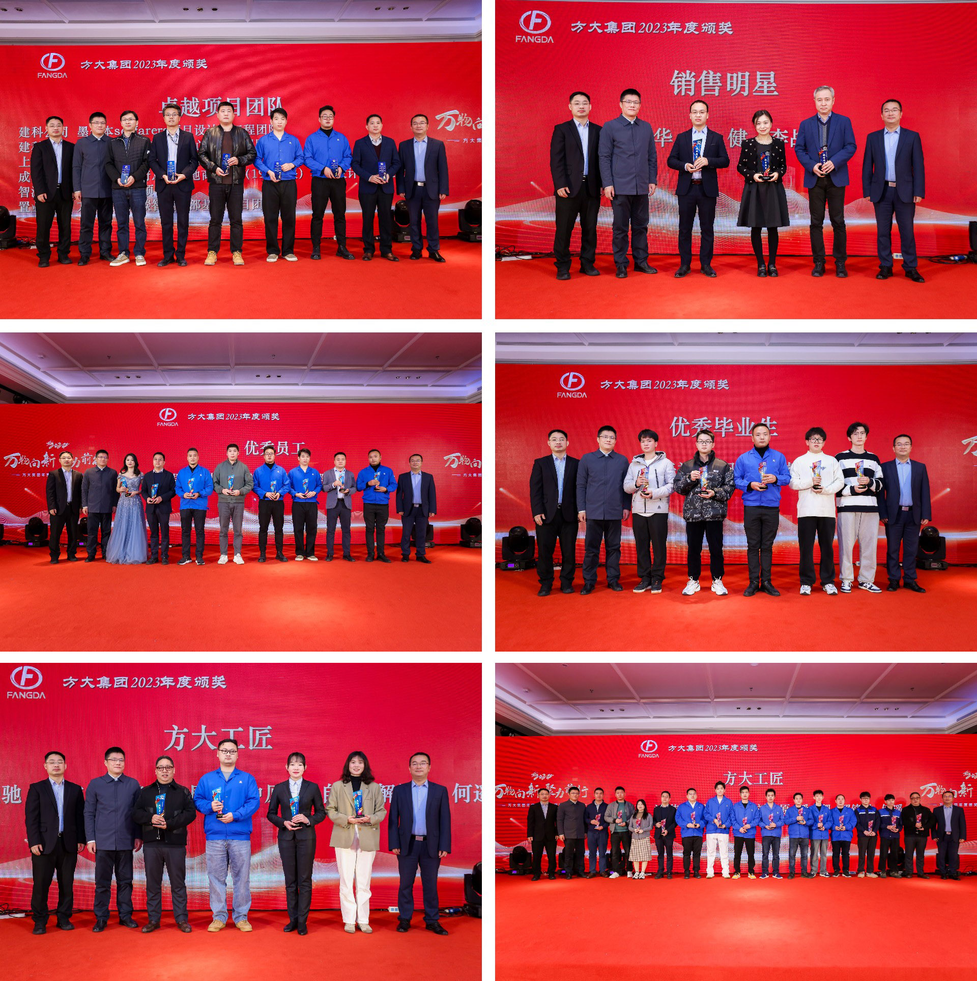 颁奖盛典向先进加冕,向榜样致敬。副总裁魏越兴宣读2023年度表彰文件,公布2023年度获奖人员及团队获奖名单。总裁熊希为突出贡献奖企业颁奖,副总裁林克槟、董格林为优秀毕业生、优秀员工、方大工匠、销售明星、卓越项目团队颁奖。